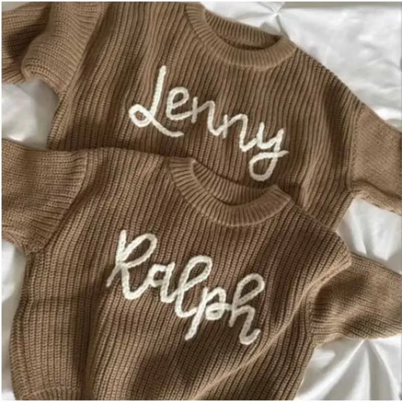 Personalized baby sweater with hand embroidered name and monogram, a precious gift from aunt for a baby girl, Christmas gift for children